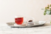 おうちでのリラックスタイムや、友人とのティータイムに最適なフィルター付きのガラスマグです。